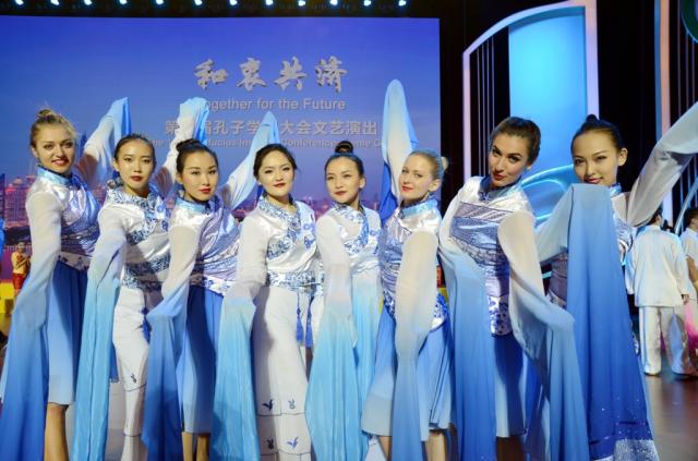 图:第十届孔子学院大会文艺演出我校学生合影